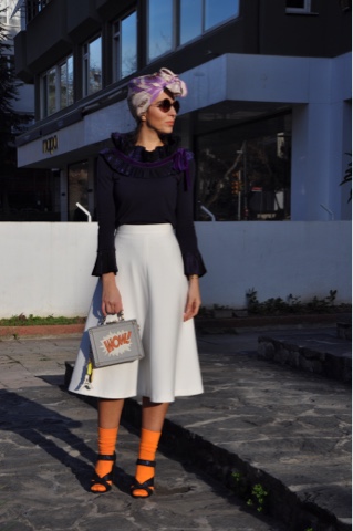 Bu kombini yaparken giydiğim turuncu çorabın rengi ruhuma yansıdı sanki, bir dügüm atarak bağladığım eşarbım bana eski Türk Filmleri'ndeki "baci kalfa" lari hatırlatsada aynaya baktığımda gördüğüm halimi çok sevdim hem iyi hem de şık hissettirdi. Bence ne yaparsanız yapın nasıl hissettiğinizi önemseyin başkalarının nasıl düşündüğünü değil..Bu ister bir blog yazısı olsun ister giydiğiniz turuncu bir çorap ister kıyafetlerinize attığınız bir düğüm..Sizi mutlu etmesi, kendinizi iyi hissettirmesi herşeyden önemli.. Bir dahaki yazıya kadar herkese mutlu günler dilerim 🙏
